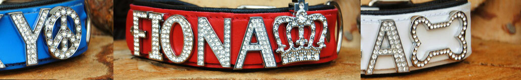 Pro Halsband sind maximal 7 Buchstaben oder 5 Buchstaben plus 1 Motiv aufschiebbar bei Strass.